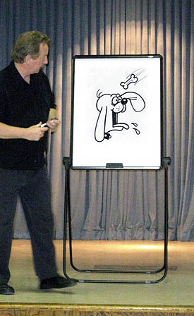 SCHOOL ASSEMBLY PROGRAMS and Cartoon Classes for libraries, day camps, parks & rec centers and more! "Thanks, Dave! I got the BEST feedback from our six schools. The students had a great time. We couldn't be more pleased." Laurie Novak - Glendale Unified School District "Hi Dave, We really enjoyed last year's assembly and would like to schedule one for this year. We are interested in the SPOOKY CARTOON CLASS in October 2014. I checked the date and it was approved by my principal." Mark MacKenzie - Stork Elementary School - Alta Loma School District ![]() ![]() ![]() ![]() ![]() ![]() Instructor: Dave Boatman Dave is a professional, working cartoonist and caricaturist. He has been drawing since an early age and attended many art classes besides his formal art training in college. Dave believes in "passing forward" what he has learned. He enjoys teaching others, while motivating students to improve their drawing techniques and skills. WORLD OF CARTOONS ASSEMBLY PROGRAM FOR SCHOOLS Dave Boatman presents a special one-hour assembly program "WORLD OF CARTOONS" for schools. It's a fun, creative, educational, artistic and interactive hour of cartoon drawing and instruction. It's the perfect program for a special school assembly! ![]() ![]() ![]() ![]() NOTE: A small gas-mileage fee might also apply depending on the location of the class. ![]() ![]() Dave has sixteen (16) different cartoon classes for you to select. Each class is an educational, fun, creative and interactive hour of cartoon illustration. Students learn how to improve their drawing skills during a step-by-step-follow-the-instructor drawing period. This class is meant to inspire and motivate students in their love of cartoons and drawing... it's also a lot of fun! 15 CLASSES: ![]()